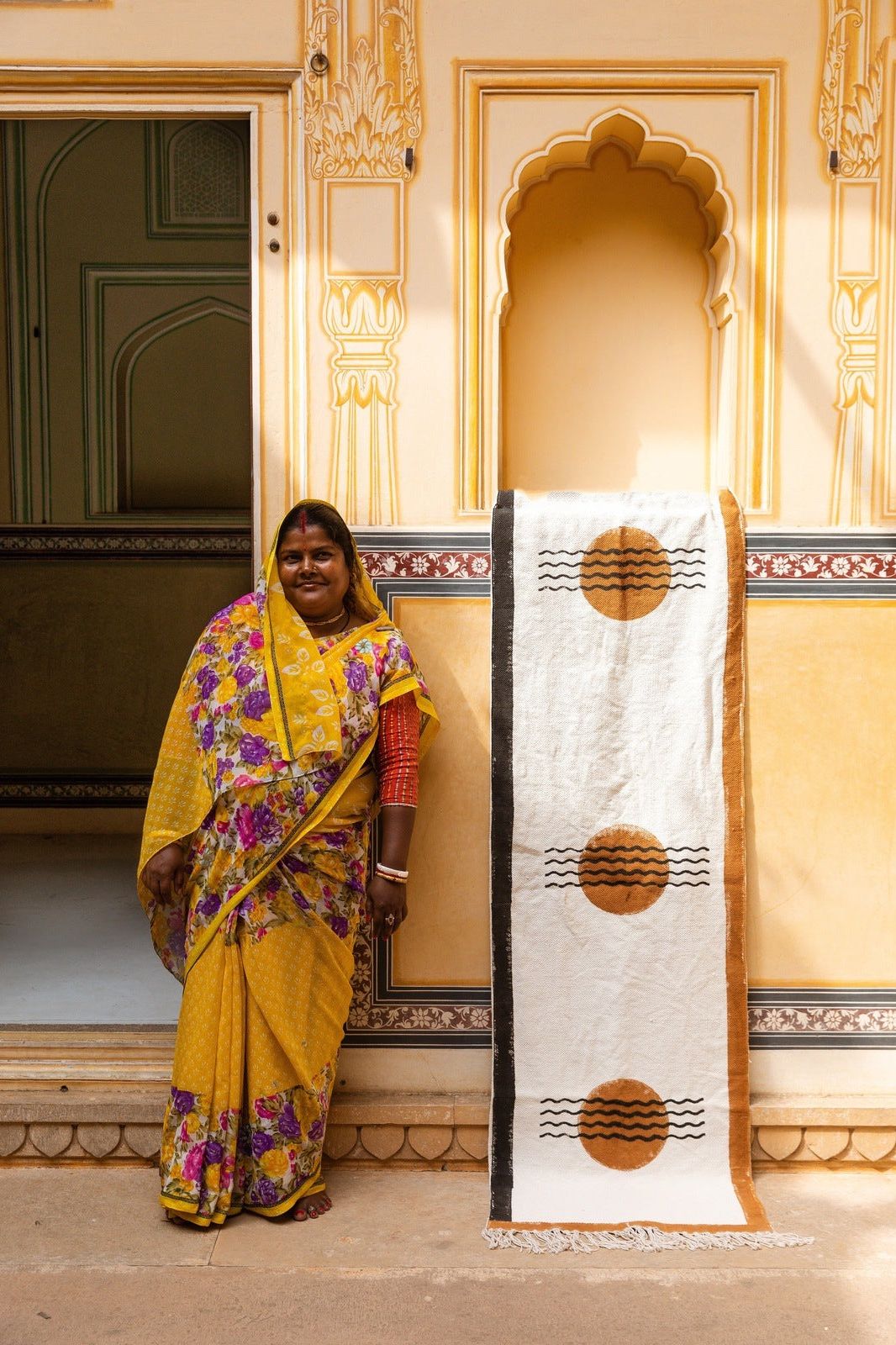 Each rug is handmade, requiring attention from 4 artisans, including wood carvers, block printers, weavers, and dye specialists. The design is hand-pressed onto each rug using hand-carved wooden blocks dipped in dyes. All rugs are made in small batches. Due to the handcrafted nature of this item, expect slight variations in the appearance of each unique piece.