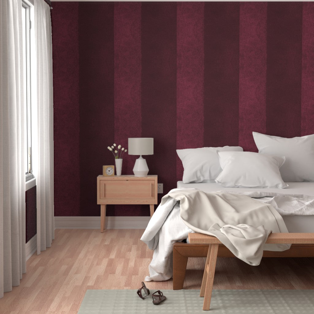 Softly painted stripes in deep wine and berry tones create a rich, dimensional look that feels both modern and timeless. The subtle texture adds movement and depth, while the color brings warmth and quiet drama to any space.